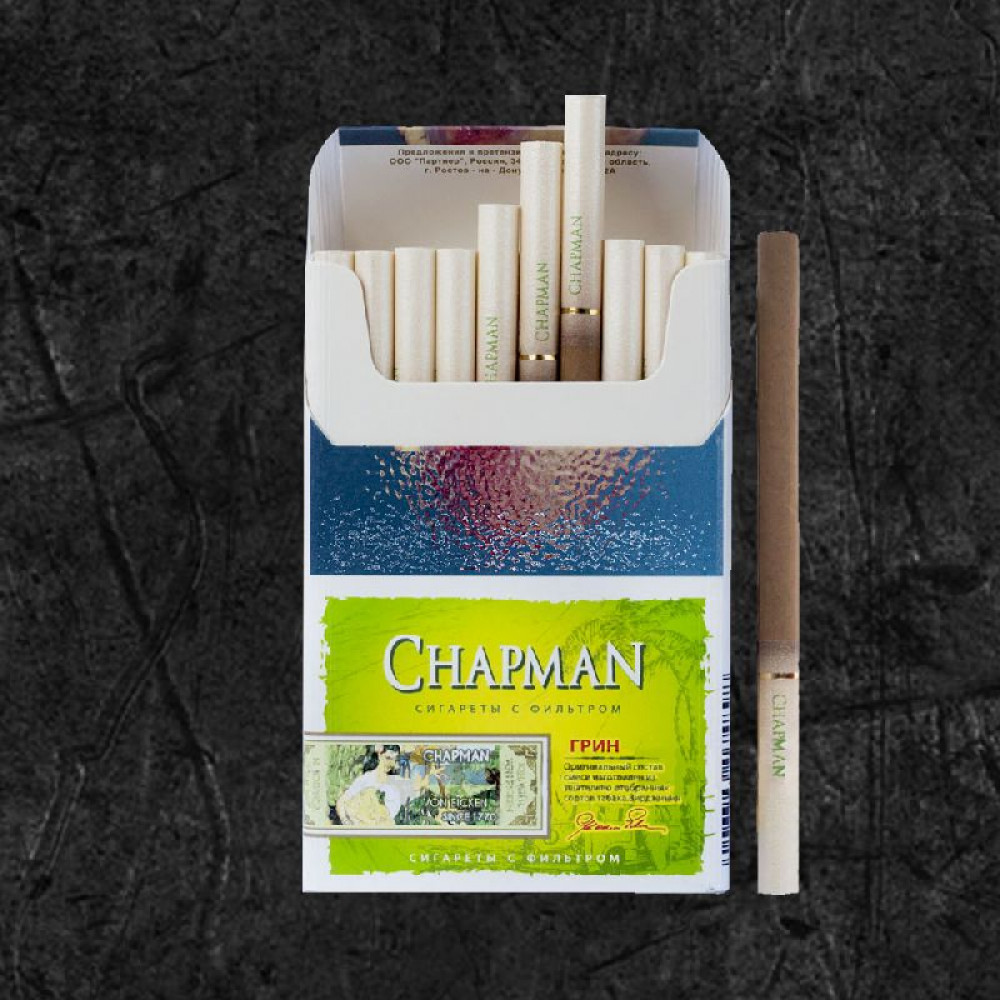 • Стильная упаковка: дизайн пачки сигарет Chapman выполнен в элегантной и минималистичной манере, идеально дополняющей образ современного человека.
